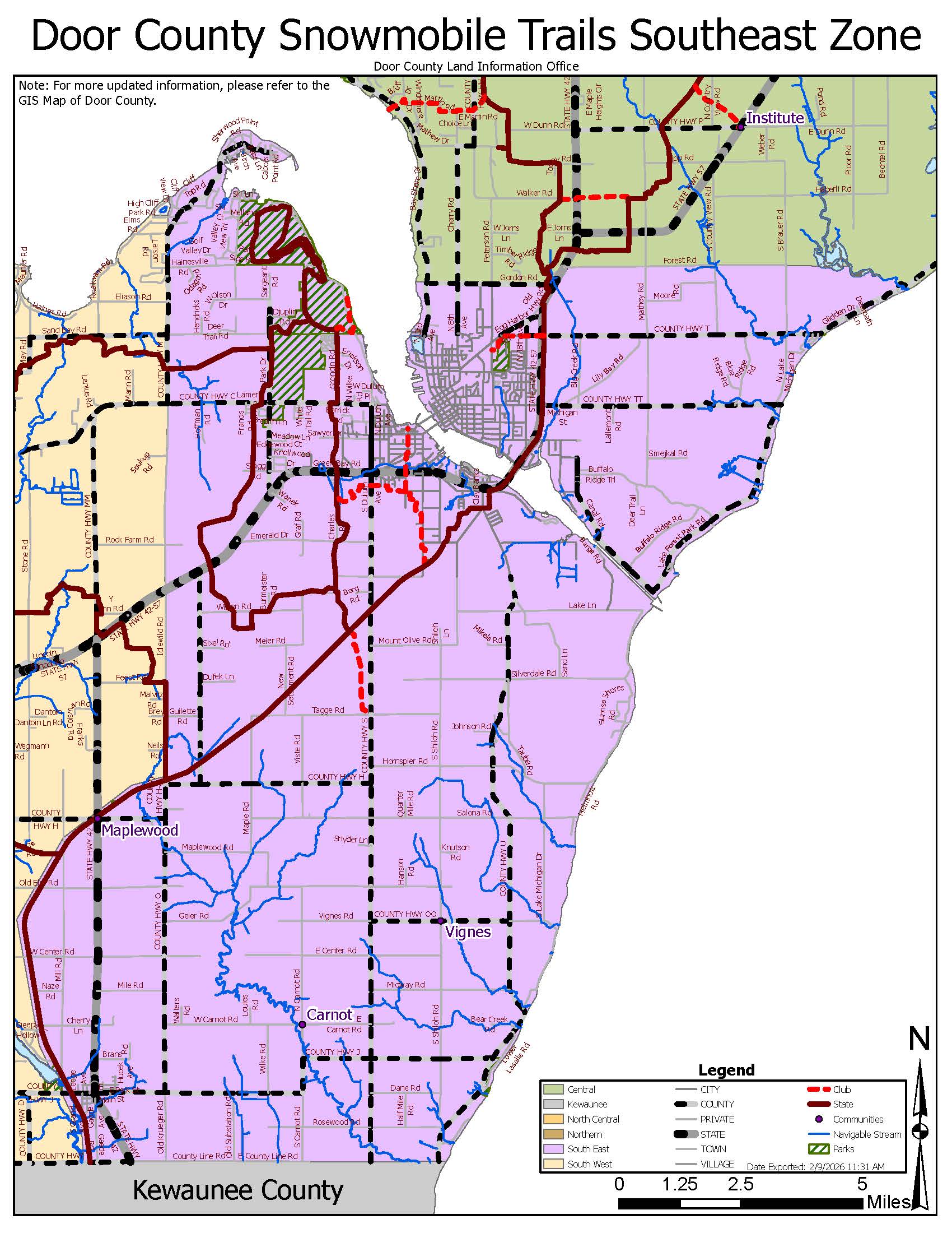 NOTICE: For detailed map of Potawatomi State Park Winter Use, please see link at bottom of Southeast Zone page.