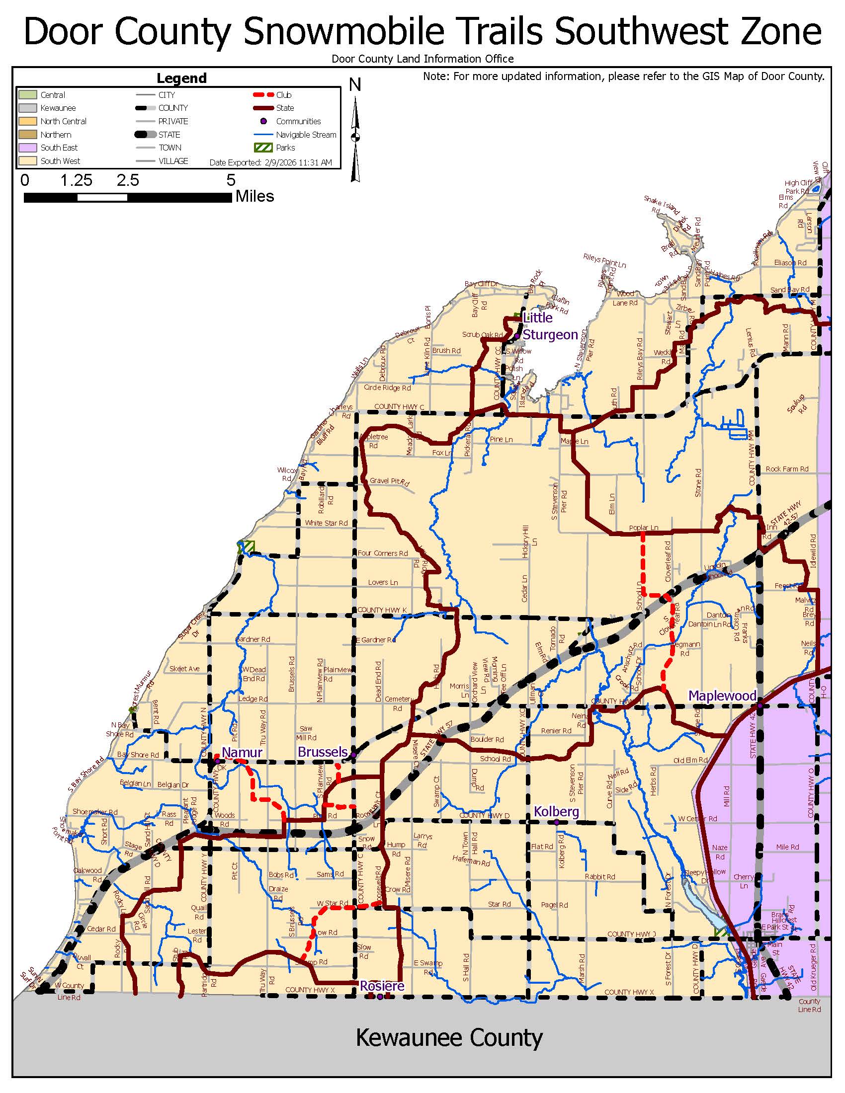 Trails are all areas west of County Road M and west of the south half of the Ahnapee State Trail to the Door County line.